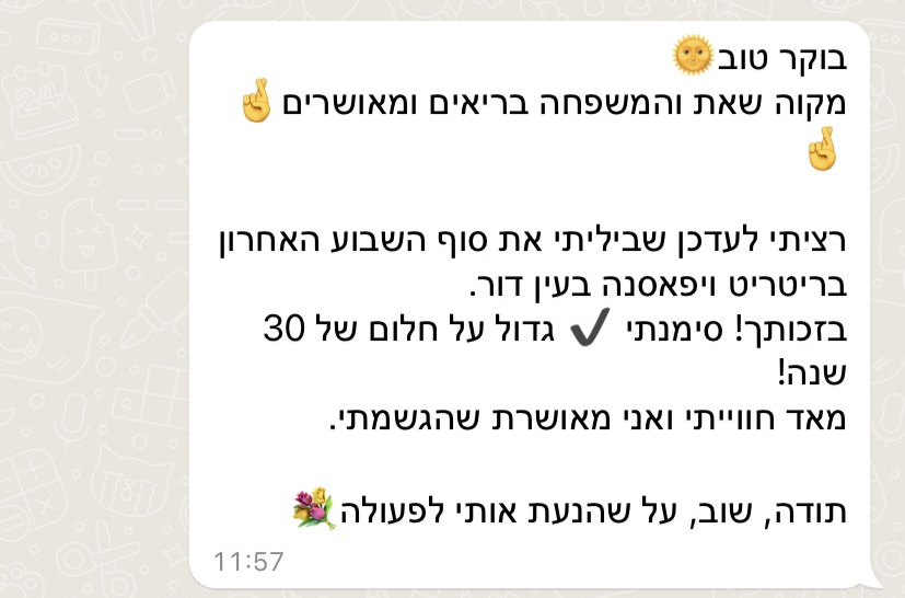 מה כוללת: 20+ פגישות לאורך 6 חודשים עד ש